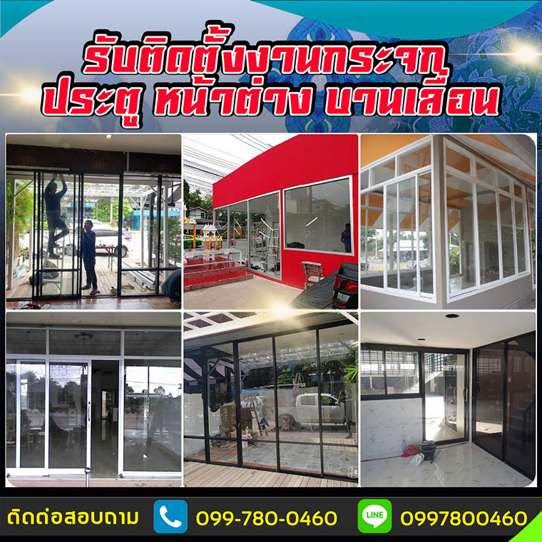 ช่างรับติดตั้งงานกระจก โทร : 099-7800460 ประตู หน้าต่าง บานเลื่อน บานสวิง กระจกอลูมิเนียม